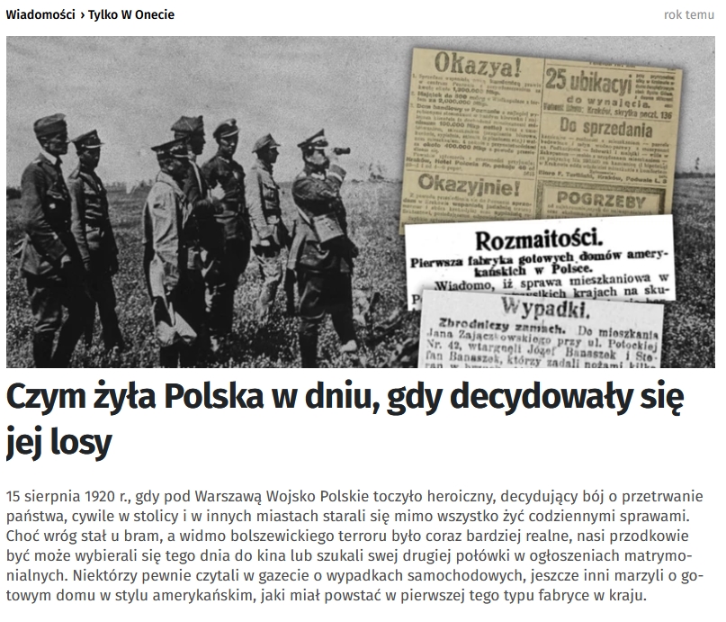 Świadomość (wiara), modlitwa i czyn potrafiły zmienić rzeczywistość. Cały wysiłek naszych przeciwników polega na tym abyśmy o tym zapomnieli. Wątek o Bitwie Warszawskiej, fałszowany jest na różne sposoby i tak na przykład robi to onet.pl