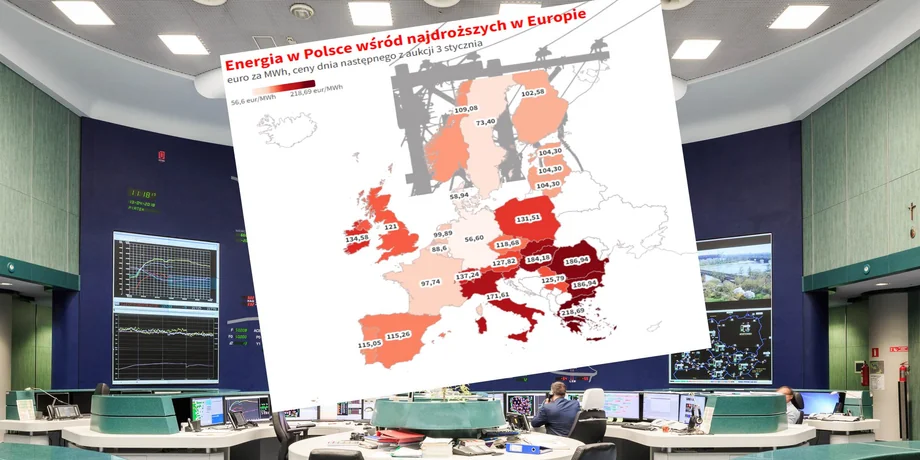 3 stycznia b.r. w aukcji dnia następnego na paryskiej giełdzie Epex Spot SE polska energia elektryczna została wyceniona na 131,51 euro za megawatogodzinę, czyli w przeliczeniu na kurs średni NBP 615,47 zł. Na TGE cenę hurtową dnia ustalono na 571,91 zł za MWh. Tymczasem w Niemczech cena była tego dnia o ponad połowę niższa - 56,60 euro za MWh.