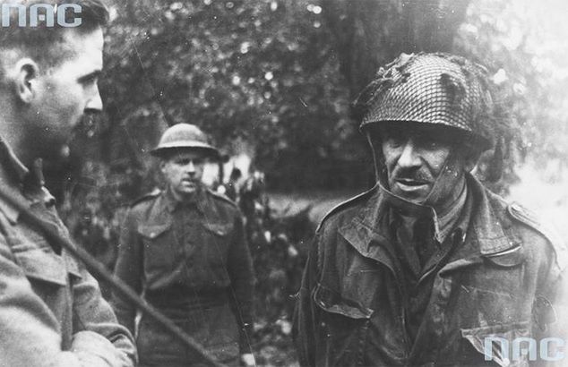 Gen. Stanisław Sosabowski (z prawej), dowodzący 1 Samodzielną Brygadą Spadochronową w rozmowie z brytyjskim gen. Thomasem Ivorem, w czasie operacji "Market-Garden" fot. NAC